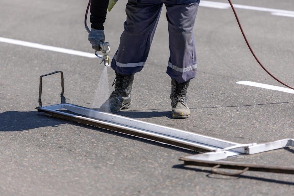 Always wear protective gear and ensure good ventilation. Handle materials safely and keep the sprayer away from children. Follow the manual’s guidelines‚ use approved paints‚ and inspect equipment regularly for safe operation.